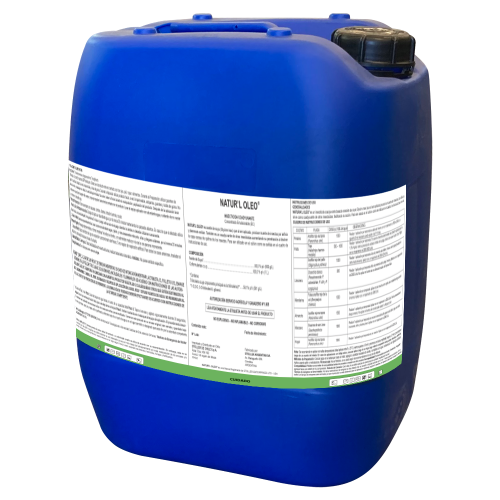 NATURA’L OLEO® es un insecticida coadyuvante basado en aceite de soya (Glycine max) que al ser aplicado provoca la muerte de insectos por asfixia y sirve como coadyuvante de otros insecticidas, facilitando su acción. Para ser usado en el cultivo como se indica en el cuadro de instrucciones de uso.